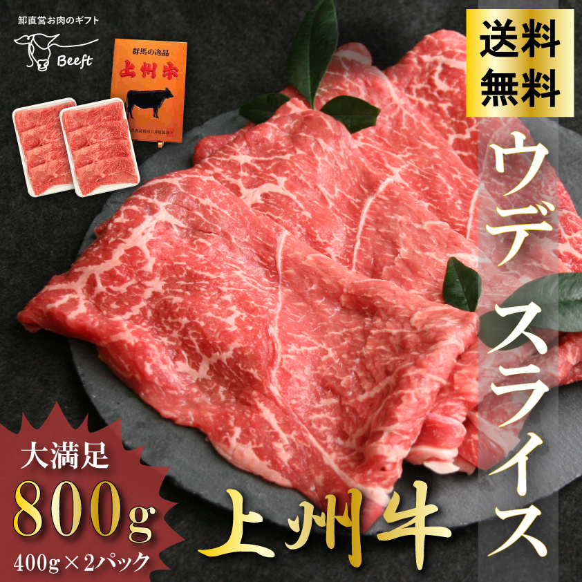 牛肉 すき焼き用 上州牛 ウデ 赤身肉 スライス 800g 薄切り 切り落とし 贈答用 送料無料 高級国産牛 400g × 2pc 御年賀 お年賀