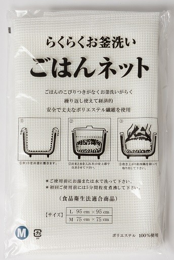 ●ポリエステル繊維でできたネットによりお米が直接お釜に触れないために、ごはんのこびりつきがなくて無駄がなく、その分節米できます。