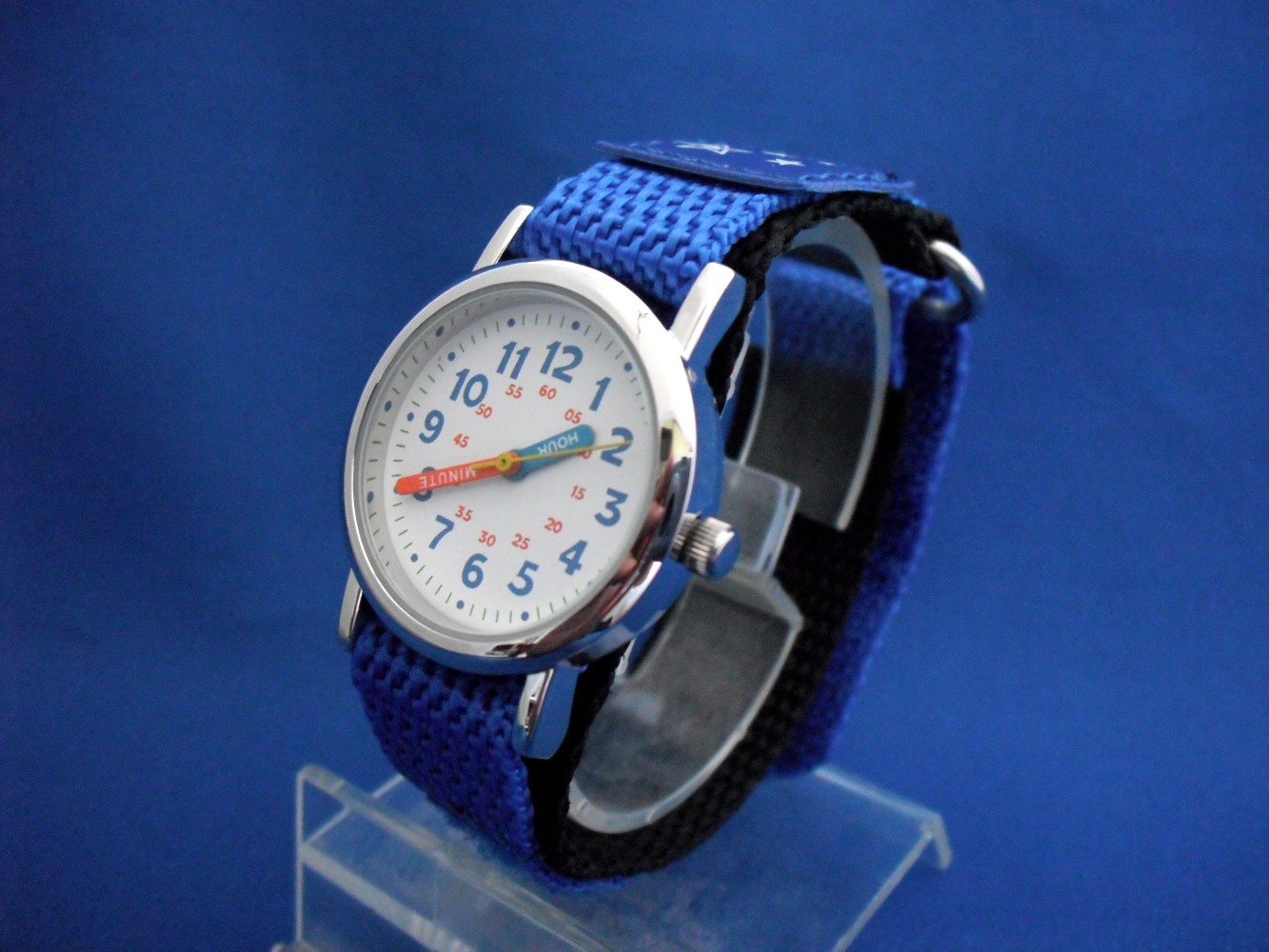 お子様のお出かけにピッタリの腕時計マジックテープで付け外しも簡単時間の読み方も学べるファッションウォッチベルトカラー:ブルー/ブラック商品サイズ(全長×直径×厚さ) : 約227 x 28.5 x 10 mm腕回り:12cm〜16cm商品重量 : 約20 g時計:クウォーツ■生産地:中国■素材・成分:裏フタ : ステンレススチールケース : 合金バンド : ナイロン風防 : ミネラルガラス■パッケージ:個包装防水 : 日常生活用防水1年間の保証書付