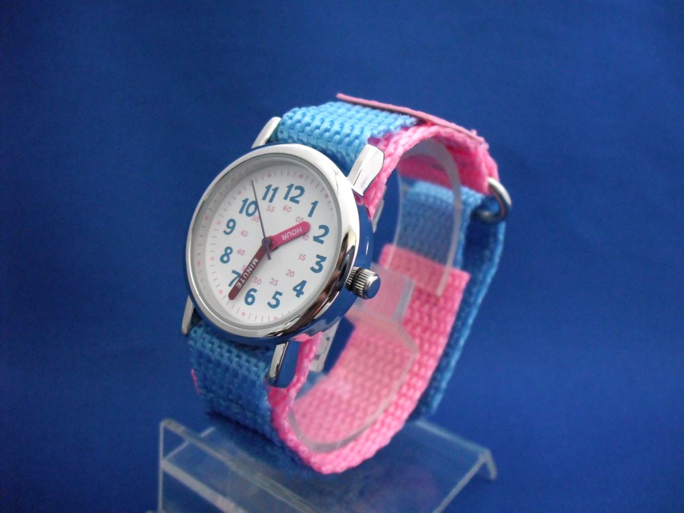 お子様のお出かけにピッタリの腕時計マジックテープで付け外しも簡単時間の読み方も学べるファッションウォッチベルトカラー:ブルー/ピンク商品サイズ(全長×直径×厚さ) : 約227 x 28.5 x 10 mm腕回り:12cm〜16cm商品重量 : 約20 g時計:クウォーツ■生産地:中国■素材・成分:裏フタ : ステンレススチールケース : 合金バンド : ナイロン風防 : ミネラルガラス■パッケージ:個包装防水 : 日常生活用防水1年間の保証書付