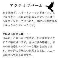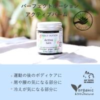 コリコリになった体と心にアロマの力: パーフェクトポーションのアクティブバームは、日々の疲れや肩こり、デスクワークによる体の負担を和らげるための、オーガニック100%ナチュラル成分のマッサージバームです。