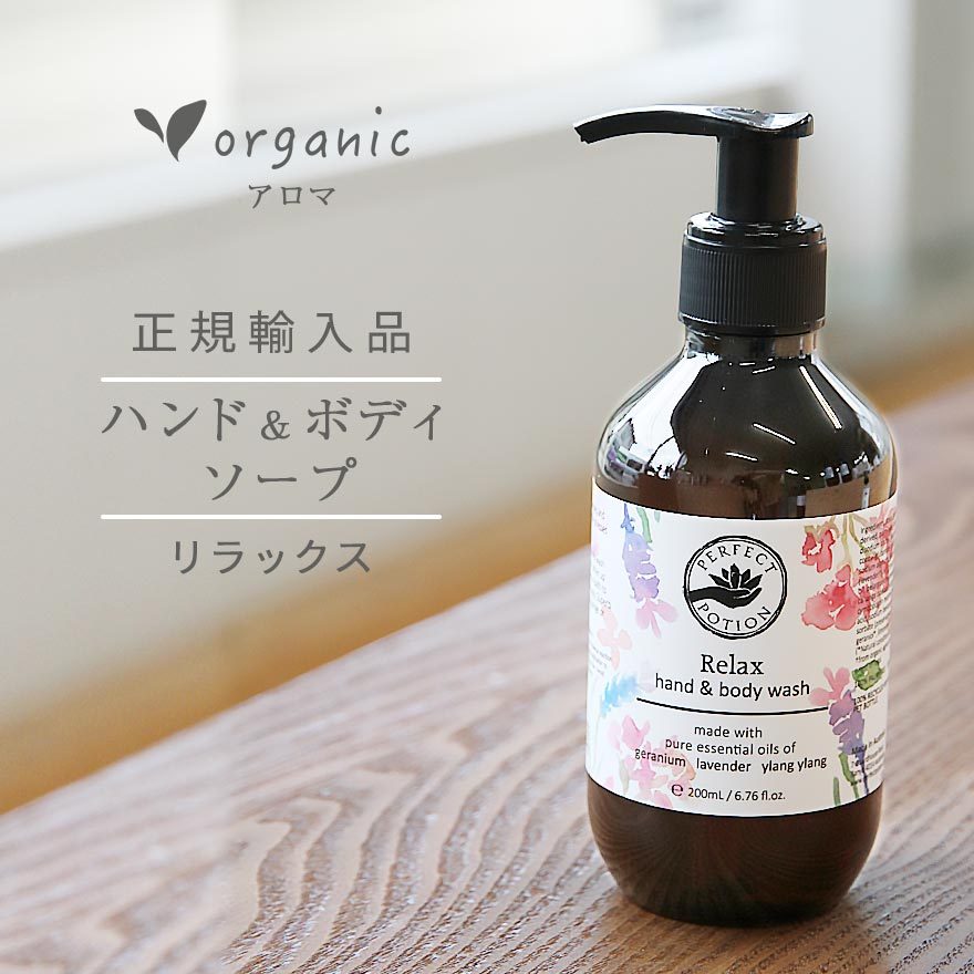 お風呂にも、洗面台にもナチュラルソープ: パーフェクトポーションの、ハンド&ボディウォッシュは、ハンドソープにも、ボディーソープにも役立つ、いい香りのオーガニックソープです。