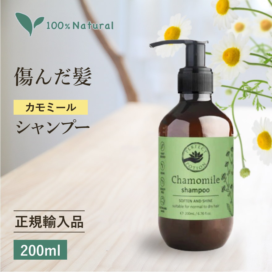 ダメージを受けた髪にツヤと潤いを与えるシャンプー。カモミールやラベンダーなどの植物成分が、枝毛、切れ毛を防ぎ、頭皮にも潤いを与えます