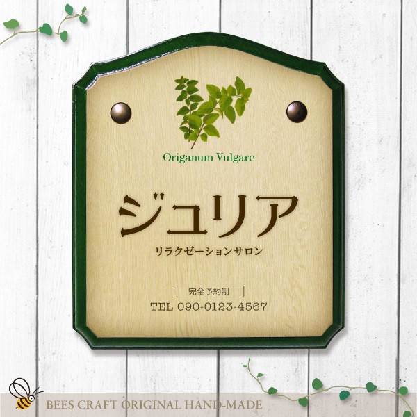 表札 おしゃれな木製表札 アンティーク表札 ハーブガーデン M 戸建て マンション サロン リベット 鋲 データ入稿可 雨ざらし不可 取り付け簡単 吊り下げにも