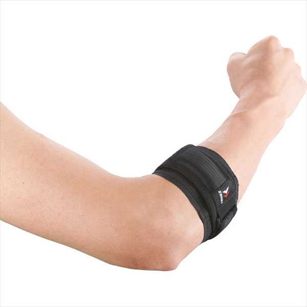 ※[サイズの選び方]腕の力を抜いた状態で、前腕の一番太い部分の太さ、簡単装着の面ファスナー仕様。エルボーパッドで的確に圧迫し、ヒジの負担を軽減します。