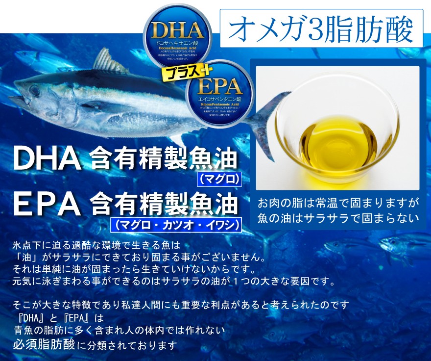 | 原材料名 | DHA含有精製魚油、EPA含有精製魚油/ゼラチン、グリセリン |