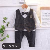 フォーマル 3点セット セットアップ ジレ 長袖シャツ パンツ 結婚式 パーティ ベスト 蝶ネクタイ 韓国子供服 キッズ服 ベビー服 男の子 80-120cm