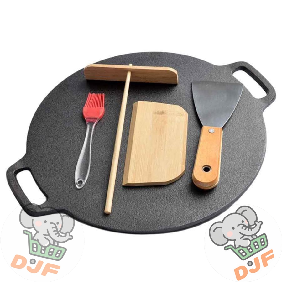 クレープパン 30cm クレープ トンボ付き IH対応 クレープメーカー クレープ焼き器 フライパン 味付け済みの鋳鉄フライパン コーティングされていないノンスティ