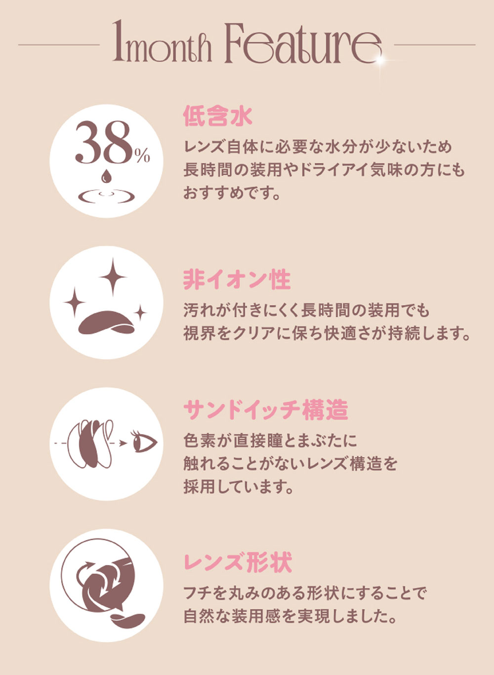 【商品詳細】●カラー:ブラウンバニー●直径:14.2mm●着色直径:13.6mm●ベースカーブ:8.6mm●含水率:38%●販売度数:±0.00〜-8.00●付属品:レンズ2枚●使用期限:開封後1ヶ月●承認番号:22400BZX00278000【区分】高度管理医療機器【製造国】大韓民国 (韓国)【メーカー名】PIA株式会社【広告文責】株式会社トクダTEL:06-6796-7555【高度管理医療機器販売業許可】第23N00119号■注意事項■コンタクトレンズは高度医療管理機器です。必ず眼科医の検査・処方を受けてお求めください。 |