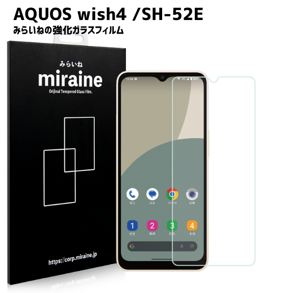 AQUOS wish4 対応 ガラスフィルム アクオス SH-52E 保護シート 強化 液晶保護 飛散防止 硬度9H ラウンドエッジ 0.3mm