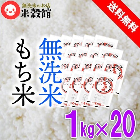 無洗米 もち米 九州産 送料無料 1kg×20個セット