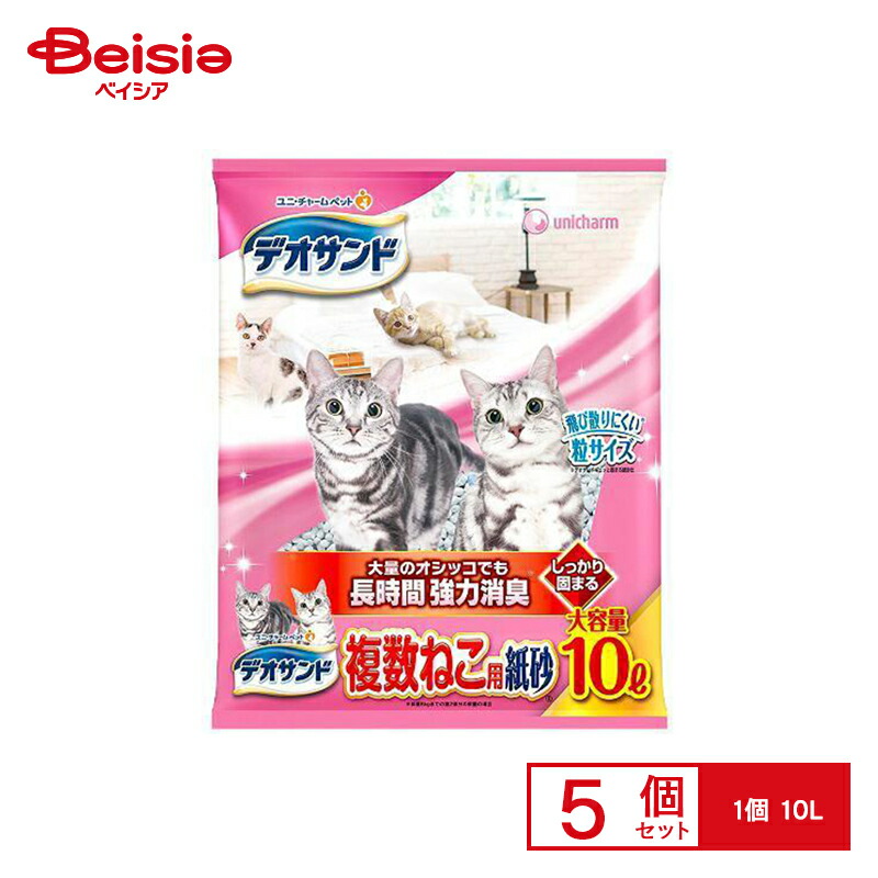 猫砂 ユニ・チャーム デオサンド 複数ねこ用 紙砂 10L×5個 | 猫砂 デオサンド 複数猫用 紙砂 ペット ネコ砂 ねこ砂 固まる 抗菌 消臭 多頭飼い トイレ砂 強力消