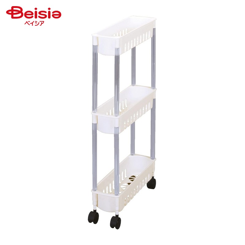 ■商品特徴:製品サイズ:幅13×奥行42.5×高さ76cm 製品サイズ:幅13×奥行42.5×高さ76cm 耐荷重:各段5kg わずかな隙間に出し入れしやすい!キャスター付きのスリム3段ワゴン 製品重量:1kg 原産国:日本 軽量で組立もラクラク簡単です。