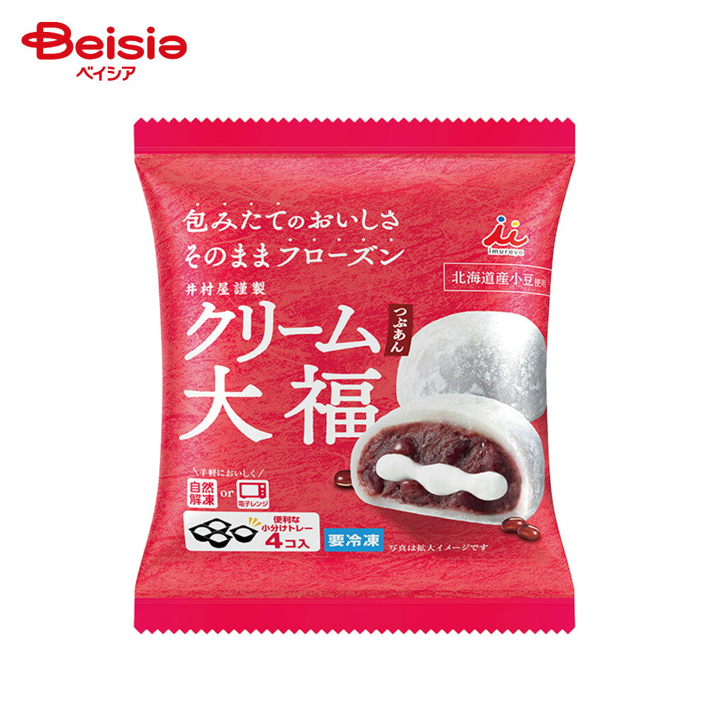 食べたい時にいつでも手軽に食べられる本格的な冷凍和菓子北海道産小豆使用。北海道産小豆使用のつぶあんと北海道産生クリームをブレンドしたホイップクリームを国産もち米を杵つきした柔らかなもち生地で包みました。お皿がいらない切り離せるトレーで、電子レンジ解凍も対応可能です。