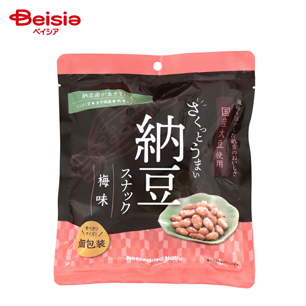 | 材料名 | 乾燥納豆(大豆(秋田県)、納豆菌)、食用油脂、梅昆布茶風シーズニング(食塩、乾燥梅肉、砂糖、昆布エキスパウダー)、食塩/調味料(アミノ酸等)、酸味料、香料、酸化防止剤(ビタミンE) |