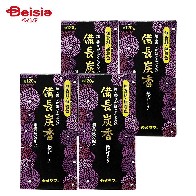 カメヤマ 花げしき 備長炭 約120g×4個 | お線香 お供え お墓参り 仏壇 お線香立て ミニ寸 炭お線香 備長炭 線香セット 匂い 仏具 お香