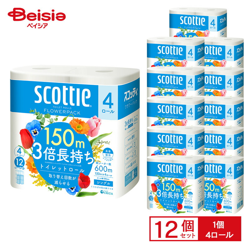 スコッティ フラワーパック 3倍長持ち シングル 150m(150m×4ロール×12セット)