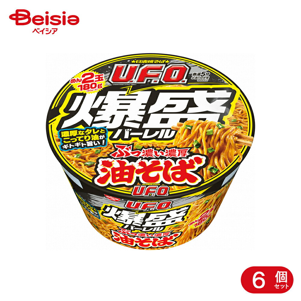 めん2玉(180g)で規格外の食べ応え!醤油味の濃厚なタレとこってり油がギトギト旨い油そば味のU.F.O.!具材はネギ!