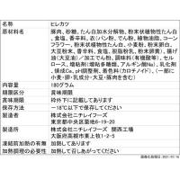 ■原材料:豚肉、砂糖、たん白加水分解物、粉末状植物性たん白、食塩、香辛料、衣(パン粉、でん粉、植物油脂、コーンフラワー、粉末状植物性たん白、小麦粉、粉末卵白、大豆粉末、香辛料、食塩、脱脂粉乳、粉末卵黄)、揚げ油(大豆油)/加工でん粉、調味料(有機酸等)、セルロース、増粘剤(増粘多糖類、アルギン酸Na)、乳化剤、焼成Ca、pH調整剤、着色料(カロチノイド)、(一部に小麦・卵・乳成分・大豆・豚肉を含む)