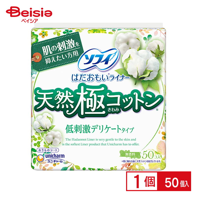 ユニ・チャーム はだおもいライナー天然極コットン低刺激タイプ50枚 | はだおもい ライナー 天然 極コットン 低刺激 50枚 おりものシート