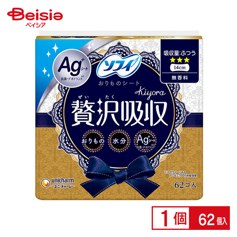 ユニ・チャーム ソフィ贅沢吸収Ag無香料ふつう用62枚 | ソフィ 贅沢吸収 Ag 銀 無香料 ふつうの日 62枚