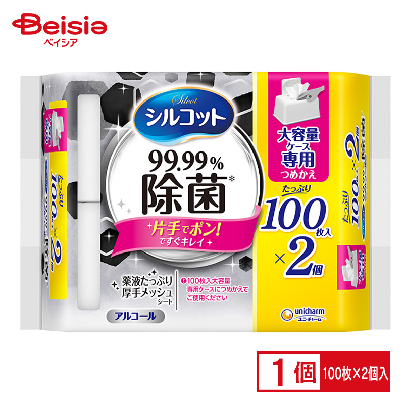 ユニ・チャーム シルコット99.99%除菌ウエットティッシュ替100枚×2 | 除菌 ウェットティッシュ 詰替 99.99% シルコット まとめ買い 大容量 携帯用 清潔 衛生