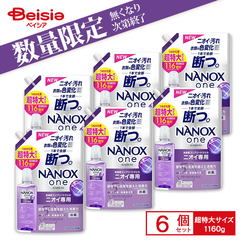 【特別SALE★期間限定】ライオン NANOX one ニオイ専用(ナノックス ワン) つめかえ用超特大 1160g×6袋(1ケース) | 洗濯 洗剤 詰替 おすすめ 人気