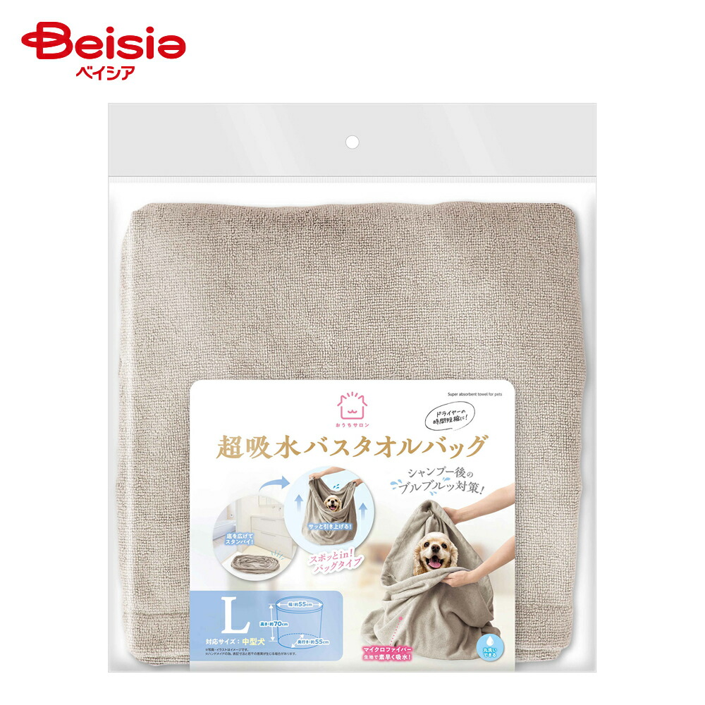 吸水性の高いマイクロファイバー生地を使用しシャンプー後の乾燥時間を短縮できる吸水性の高いマイクロファイバー生地を使用しシャンプー後の乾燥時間を短縮できる使用方法?底面を広げて置いてスタンバイ!?ブルブルッとする前にサッ!と引き上げる?やさしくタオルドライ!※吸水しにくくなれば、タオルを手で絞ってご使用ください。※からだが濡れていると、被毛がからみやすくなります。タオルドライの際は、被毛や皮膚をこすりすぎず、おしあてるようにご使用ください。●ペットのお手入れ以外には使用しないでください。 ●被毛のからまりを防ぐため、毛玉やもつれをなくしてから使用してください。 ●粘膜とその周辺(目・鼻・口・耳など)ほか、被毛が薄く皮膚が敏感なところには使用しないでください。 ●以下の条件にあるときには、使用を避けてください。3ヵ月未満の幼犬/皮膚・被毛に異常・病気・ケガがあるとき。 ●力を入れてこすったりしないでください。お手入れしすぎて皮膚・被毛を傷つけないようにしてください。 ●事故や危険がないよう、安全に配慮してください。使用・保管の際には、お子様やペットがいたずらしないようにしてください。 ●床に置いたままにしないでください。また、火気や暖房器具のそばで使用したり、置いたりしないでください。 ●繊維が細いため、手肌(あれている部分など)に引っかかることがあります。お手入れ方法【手洗い】 薄めた中性洗剤で洗います。水かぬるま湯でよくすすぎ、手で水分を絞ります。【洗濯機】 ソフト(手洗い)コースで、洗濯・脱水します。水洗後は陰干しし、十分に自然乾燥してください。(詳しくは、表示マークをご覧ください。)【品質・機能維持のために】※塩素系漂白剤、柔軟剤、柔軟剤入りの洗剤は使用しないでください。※ほかの洗濯物とわけて洗ってください。※乾燥機、アイロンは使用しないでください。まるで自宅がサロン!?手軽に簡単お手入れシリーズマイクロファイバー生地で素早く給水!おうちサロン