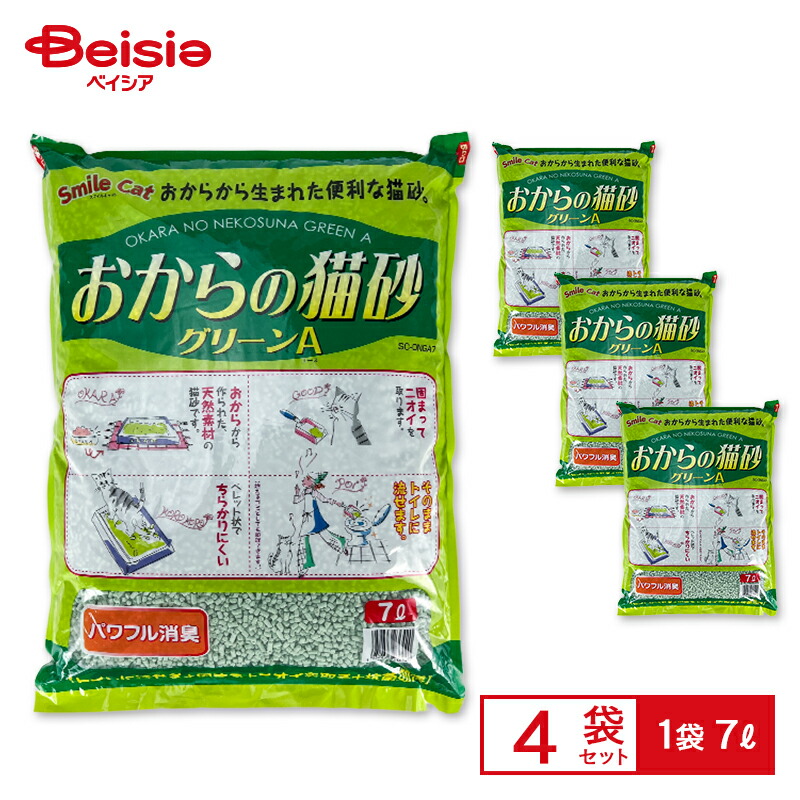 【5/31 9:59まで★20%ホ゜イントハ゛ック】 常陸化工 スマイルキャット おからの猫砂 グリーンA 【7L×4袋】28L(送料無料)【 爆買 】