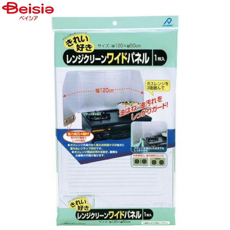 | 商品特徴 | レンジクリーンパネルです。コンロ周りに油が飛び散らないようにガードします。磁石4個とフラップ付で、安定して立てることができます。背面と左右の3面をカバーします。中央排気口・後方排気口、どちらのタイプのコンロにもお使いいただけます。 |
