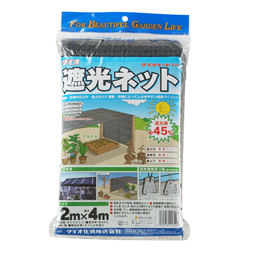 [商品説明]歴史の長い、ベーシックで高品質な織物製遮光ネットです遮光ネット形状の安定が良く、均一に遮光できます伸び縮みもあまりなく、日本国内品質の遮光ネットです●サイズ:2×4m●色:黒●遮光率:約45%●ポリエチレンネットは直射日光をカットしますが、日陰になるネットの内側や室内には十分な通気が必要です通気が不足すると、温度上昇の原因となりますネットは遮光率に応じて日光を遮りますが、積極的に冷却する機能はありません