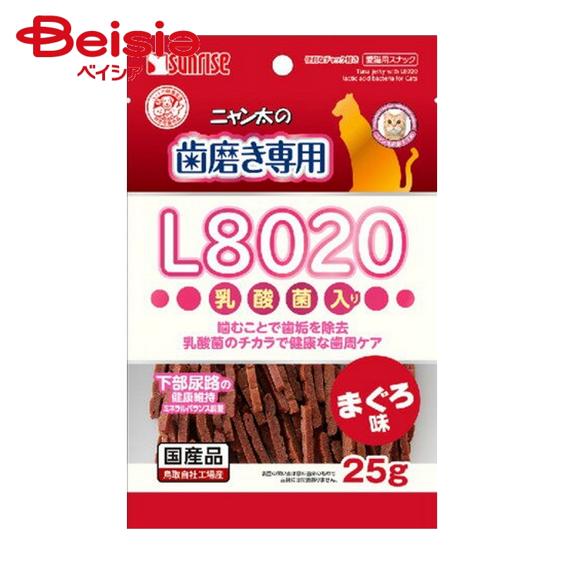 ■商品特徴:L8020乳酸菌を配合したまぐろ味の細切りジャーキーです。