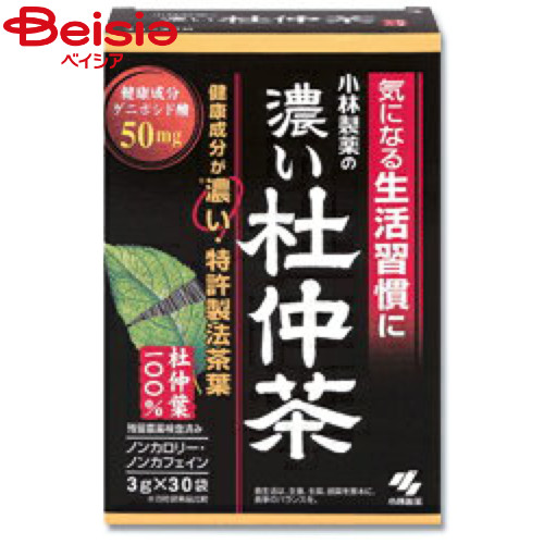 ●生活習慣が気になる方に。脂肪分、カロリー、塩分ゼロの健康茶です。●小林製薬の杜仲葉は健康成分「ゲニポシド酸」がもっとも豊富な5-8月に限定し手摘みで収穫をし、茶葉に加工しています。●濃い杜仲茶は、健康成分ゲニポシド酸8倍(当社比※)。※小林製薬の杜仲茶1.5g×30袋(煮出し用)と比較●独自のえぐみがある杜仲茶をすっきり香ばしく風味豊かに仕上げました。●1袋(3.0g)で1.5L煮出せるので経済的です。●ノンカロリー・ノンカフェイン。夜のティータイムや寝る前に、子供から大人まで妊婦さんも安心して飲んでいただけます。