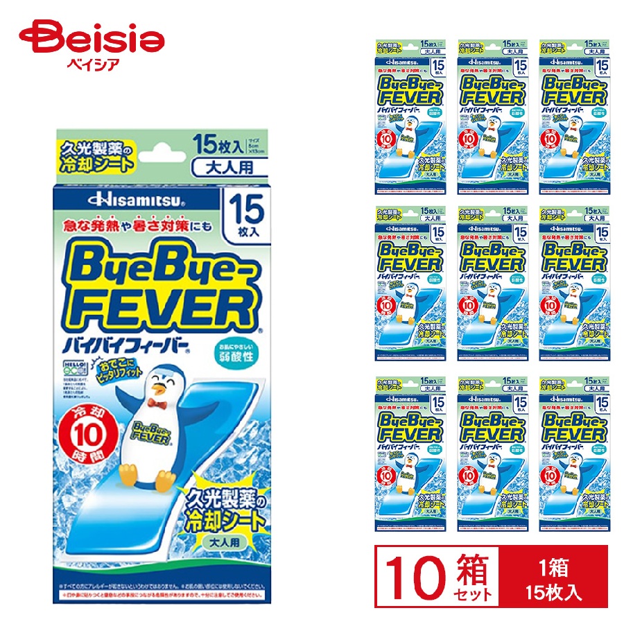 <2026年12月までの期限商品> バイバイフィーバー 大人用15枚×10個セット 久光製薬 | 冷却シート 大人用 熱さまシート 発熱 風邪 熱対策 冷却ジェル 冷却 15枚