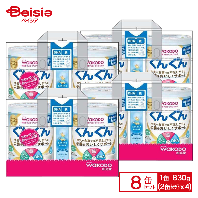 Wakodo 和光堂 フォローアップミルク ぐんぐん 8缶(830g×2缶入り×4セット) | 粉ミルク ベビー用品 DHA 鉄 カルシウム ビタミンC ビタミンD 亜鉛 送料無料 新