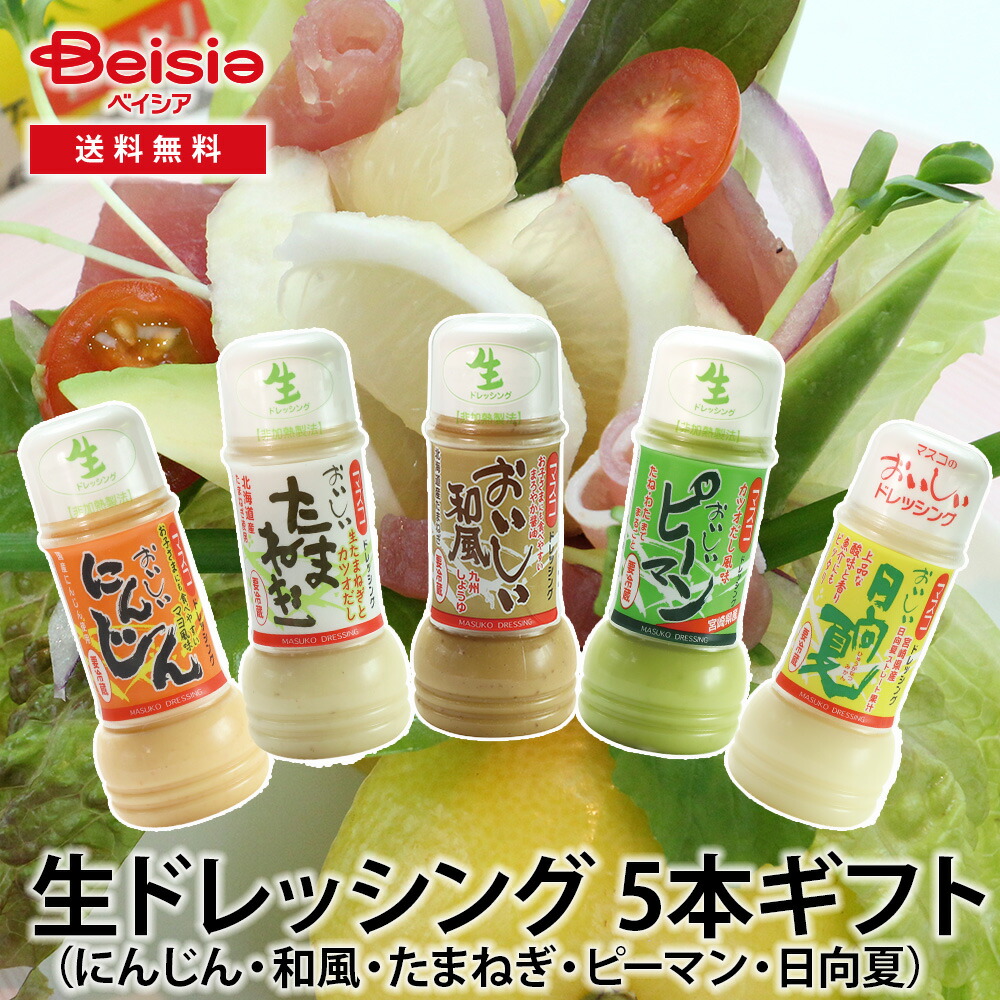 マスコ 生ドレッシング 5本ギフト(にんじん・和風・たまねぎ・ピーマン・日向夏) | 生ドレッシング 5本 ギフト 贈答品 プレゼント ご褒美 ドレッシング ギフ