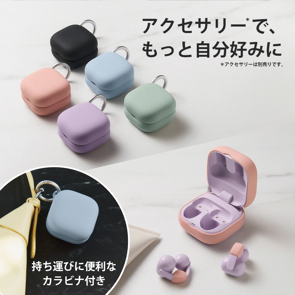 ソニーの品質基準をクリアした5色のケースカバーとフィッティングクッションを別売りで販売。お気に入りのカラーで自分好みに仕立てることができます。また、本体に傷が付きにくくなるメリットもあります。