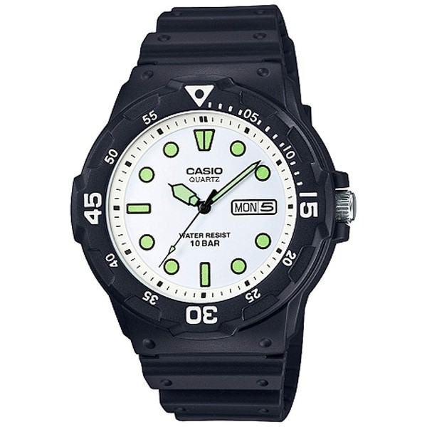 メーカー:カシオJAN:'4549526170485型番:MRW-200HJ-7EJF■商品説明■●10気圧防水●回転ベゼル搭載●電池寿命約3年■仕様■・カラー:文字板・ホワイト系、ケース/バンド・ブラック系