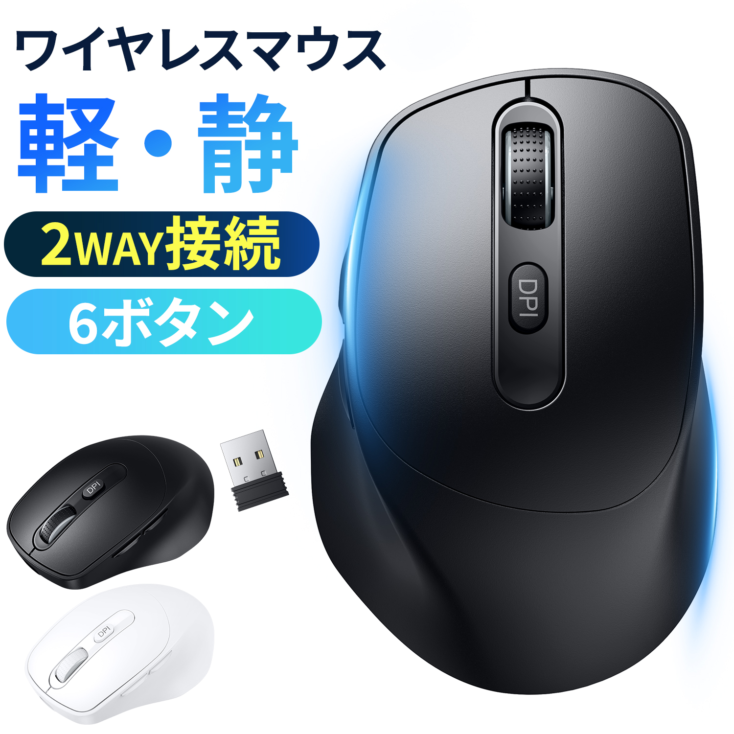 マウス ワイヤレスマウス 無線 Bluetoothマウス 6ボタン 2.4GHz 超静音 バッテリー内蔵 充電式 高精度 Mac/Windows/surface/Microsoft Pro 使いやすい