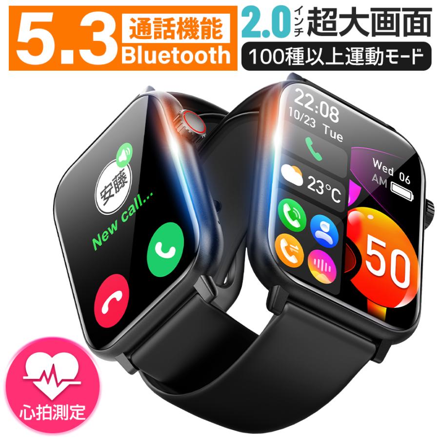 スマートウォッチ 2.0インチ大画面 通話機能 心拍計 着信通知 日本製センサー 100種以上運動モード 腕時計 睡眠 歩数 IP68防水 iPhone Android対応 男女兼用