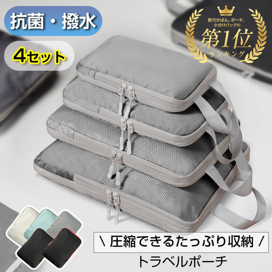【ランキング第1位】 トラベルポーチ 圧縮 4点セット 圧縮バッグ 収納ポーチ 旅行用ポーチ インナーバッグ 大容量 旅行 ファスナー 4サイズ 便利グッズ 収納