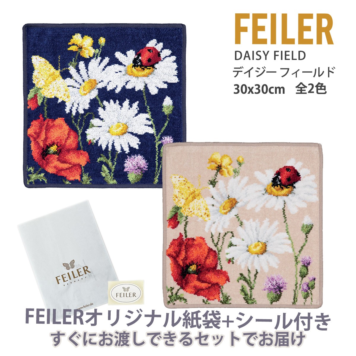 フェイラー ハンカチ タオル ギフト 大判 ブランド 退職 お礼 プレゼント レディース 30X30cm 花 デイジー フィールド FEILER
