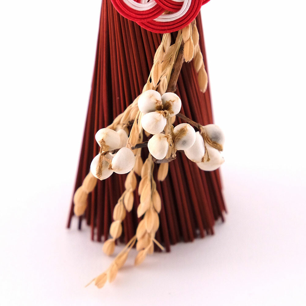 実り多い一年になるよう願いを込め、稲穂とナンキンハゼをあしらったい草のお飾り