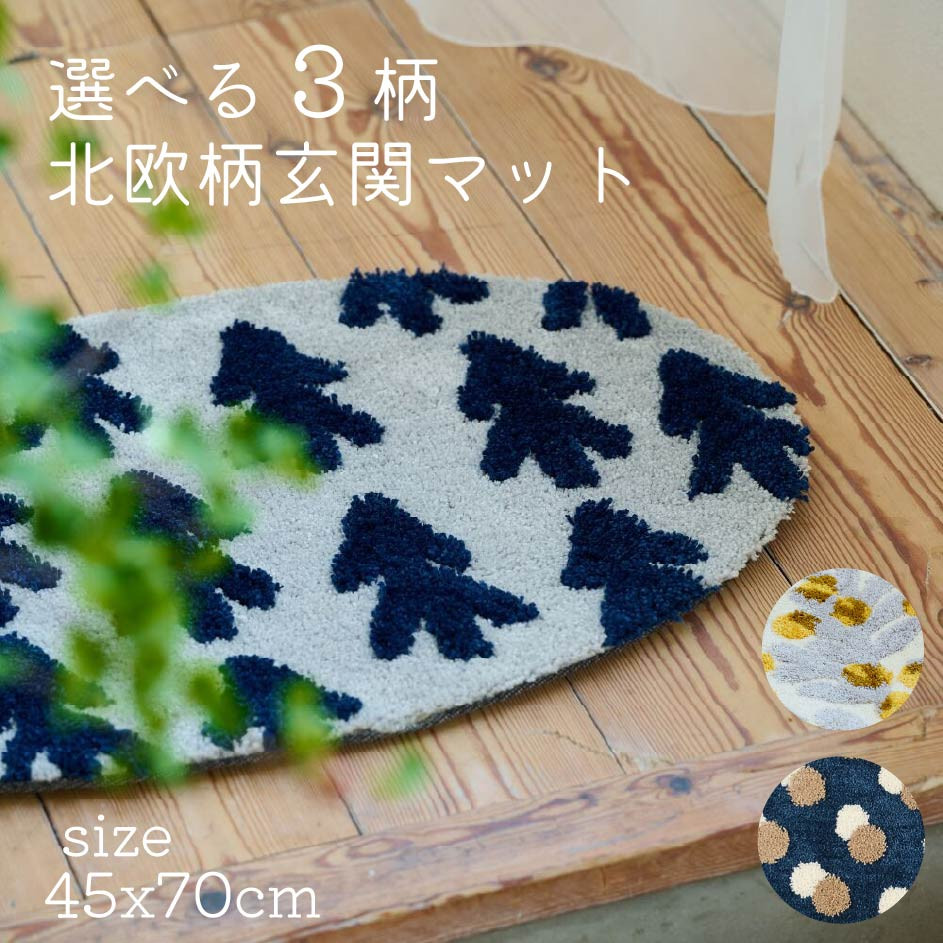 玄関マット 室内ラグ フロアマット 北欧系インテリア ウッド オリーブ ドット ナチュラル おしゃれ 洗える滑り止め付