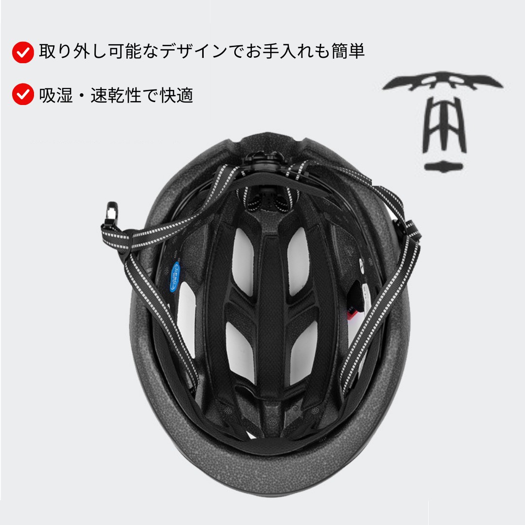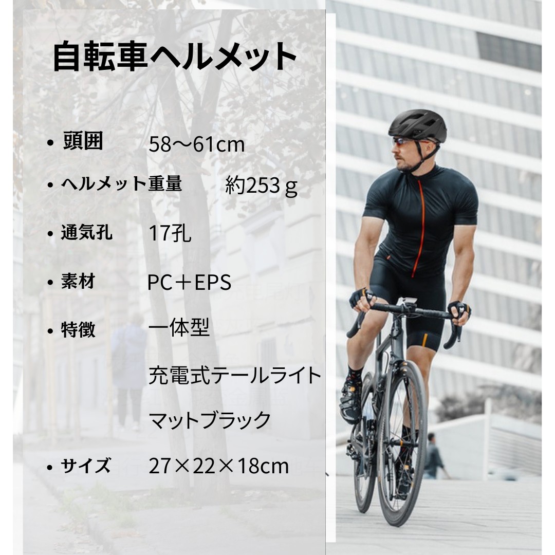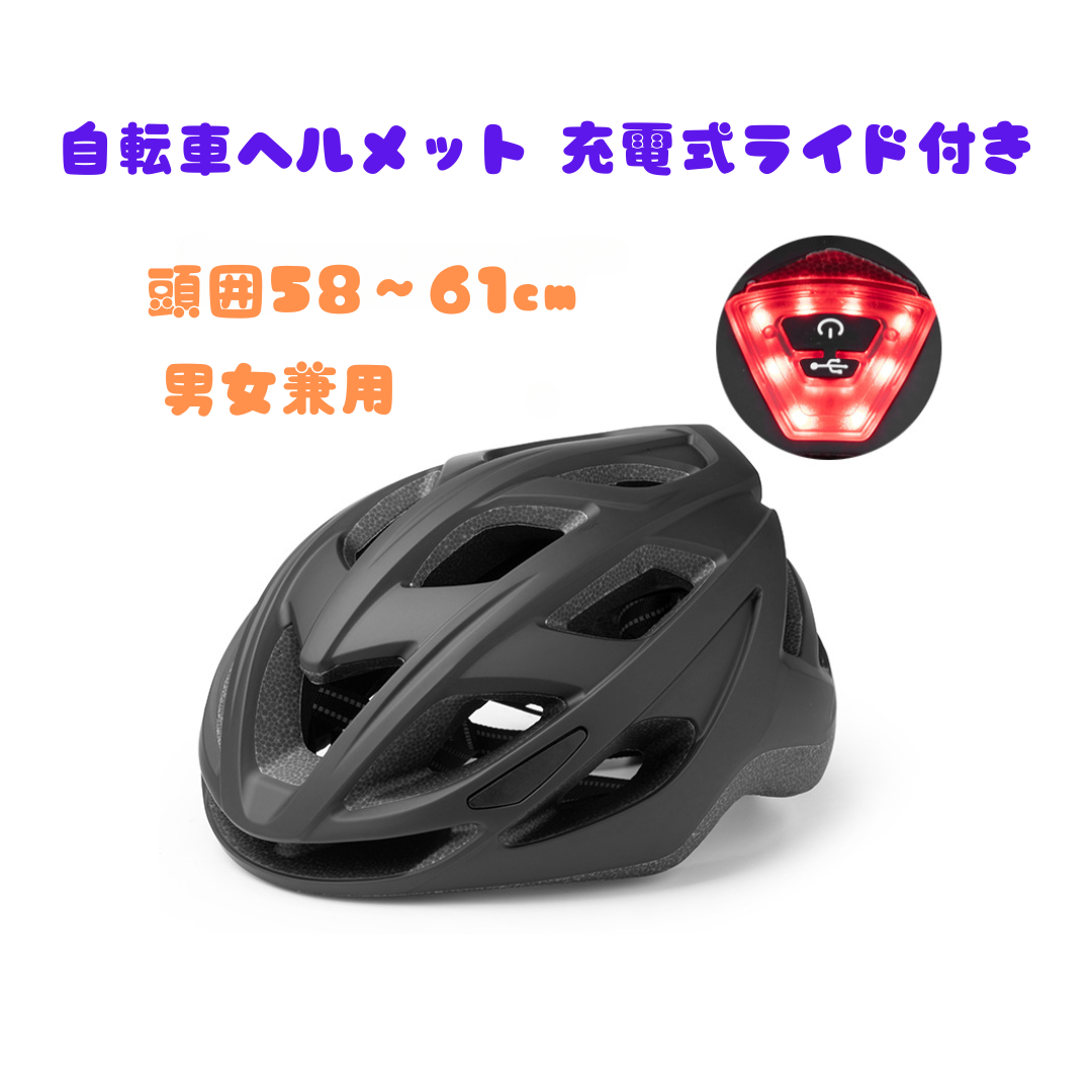 BELLAMS自転車ヘルメット 充電式ライト付き つや消しブラック 流線型 サイクルヘルメット サイズ調整可能 頭囲58〜61cm 通学 通勤 送料無料fy017-1