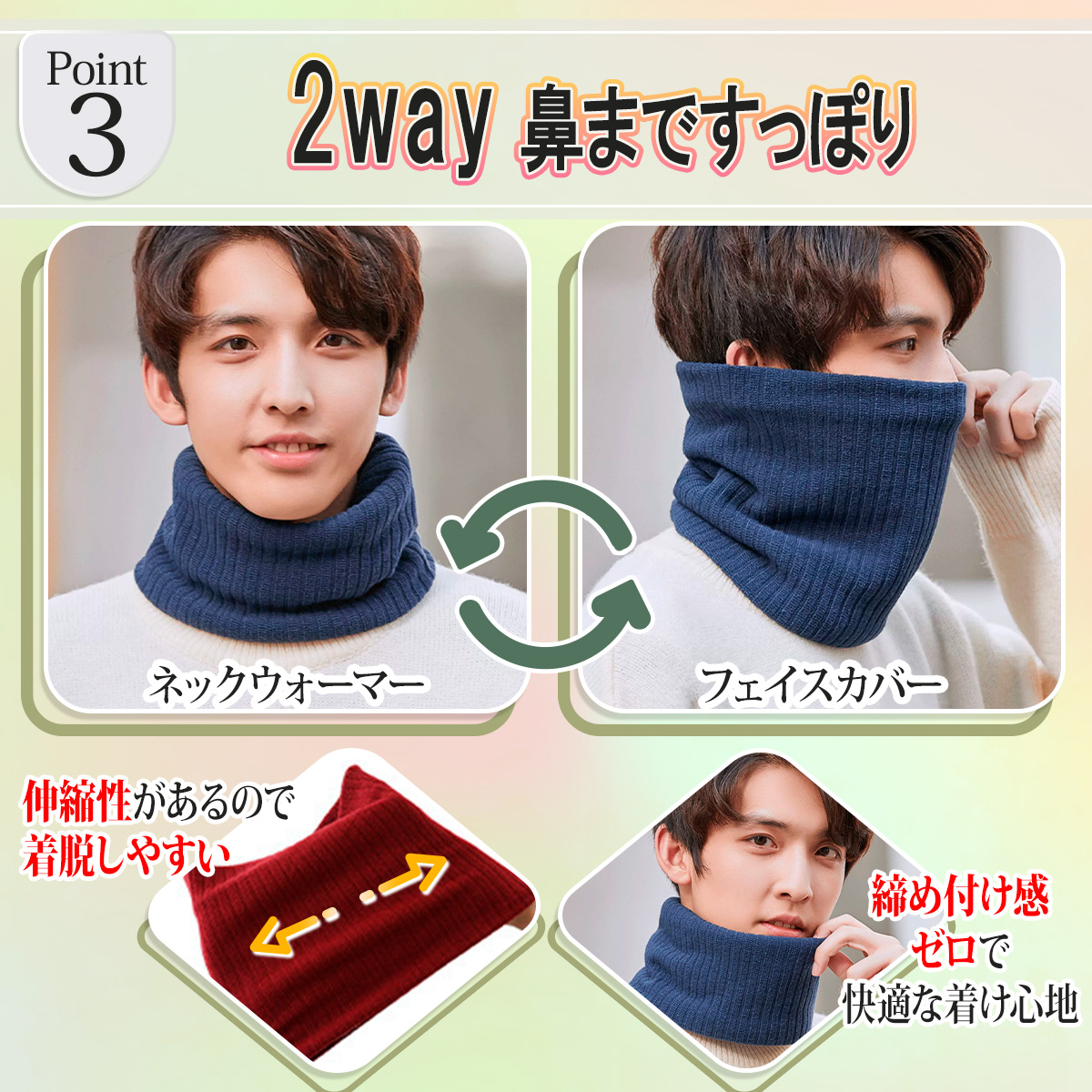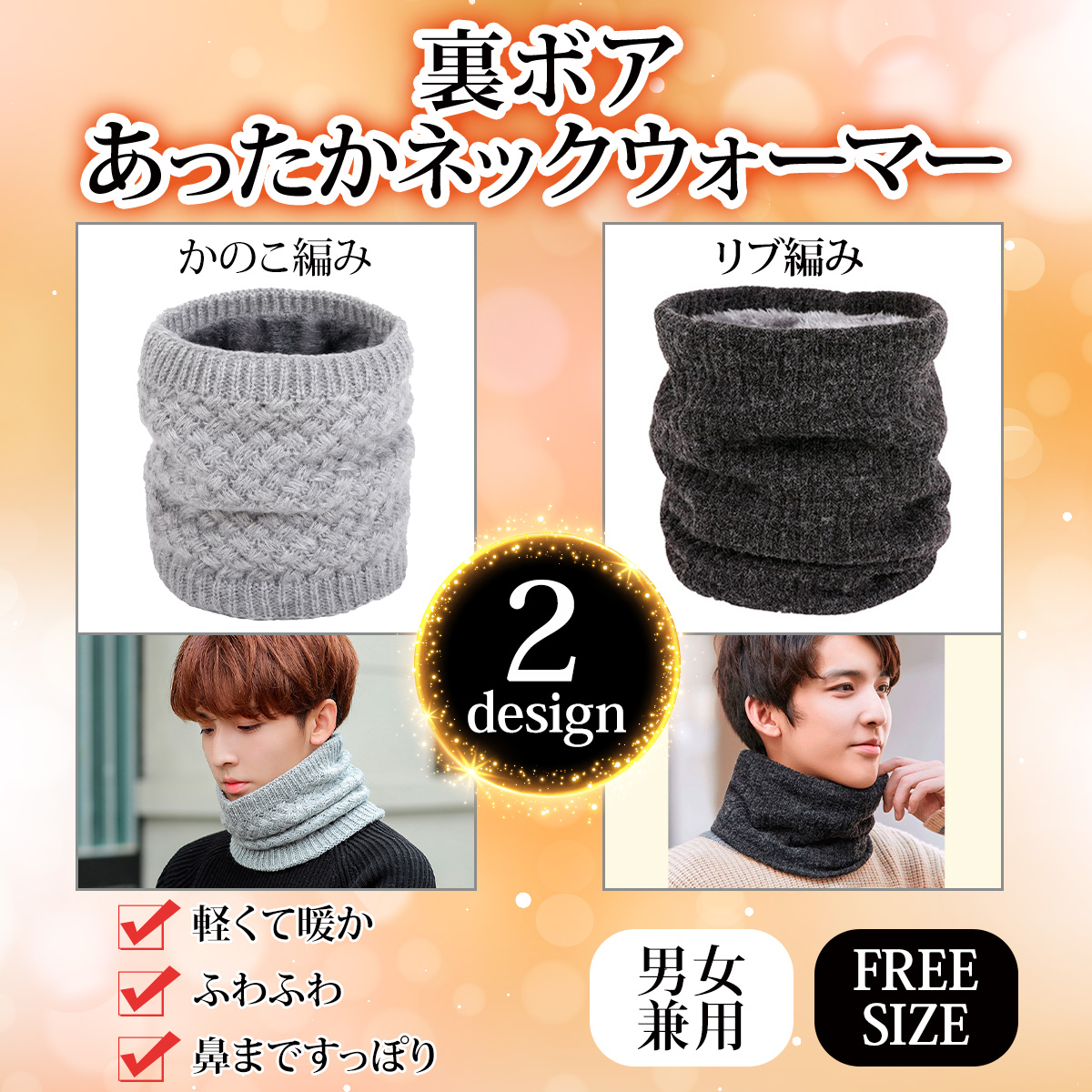 ネックウォーマー メンズ レディース 裏ボア 裏起毛 軽くて暖か かのこ編み/リブ編み 防寒 二重構造 2way 男女兼用