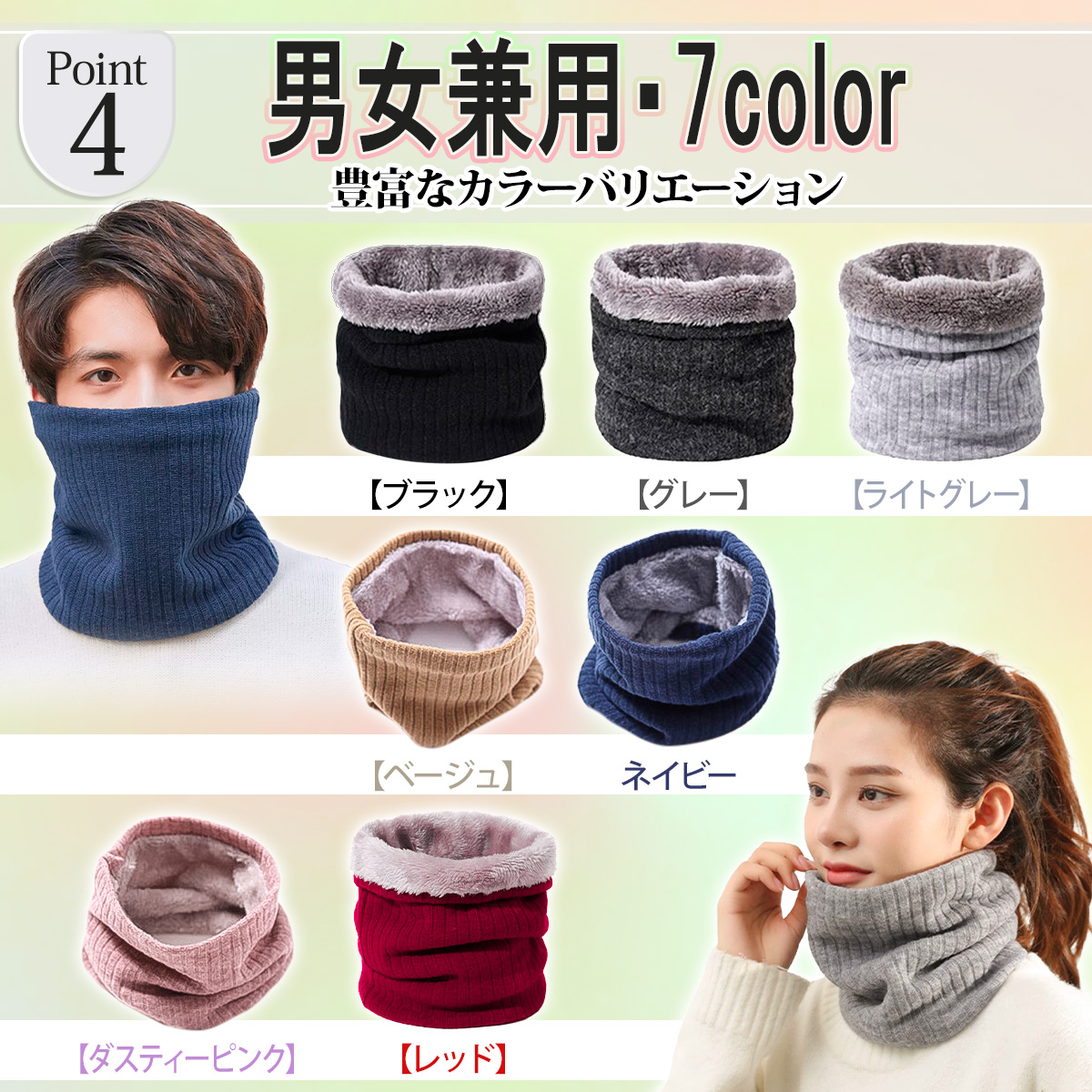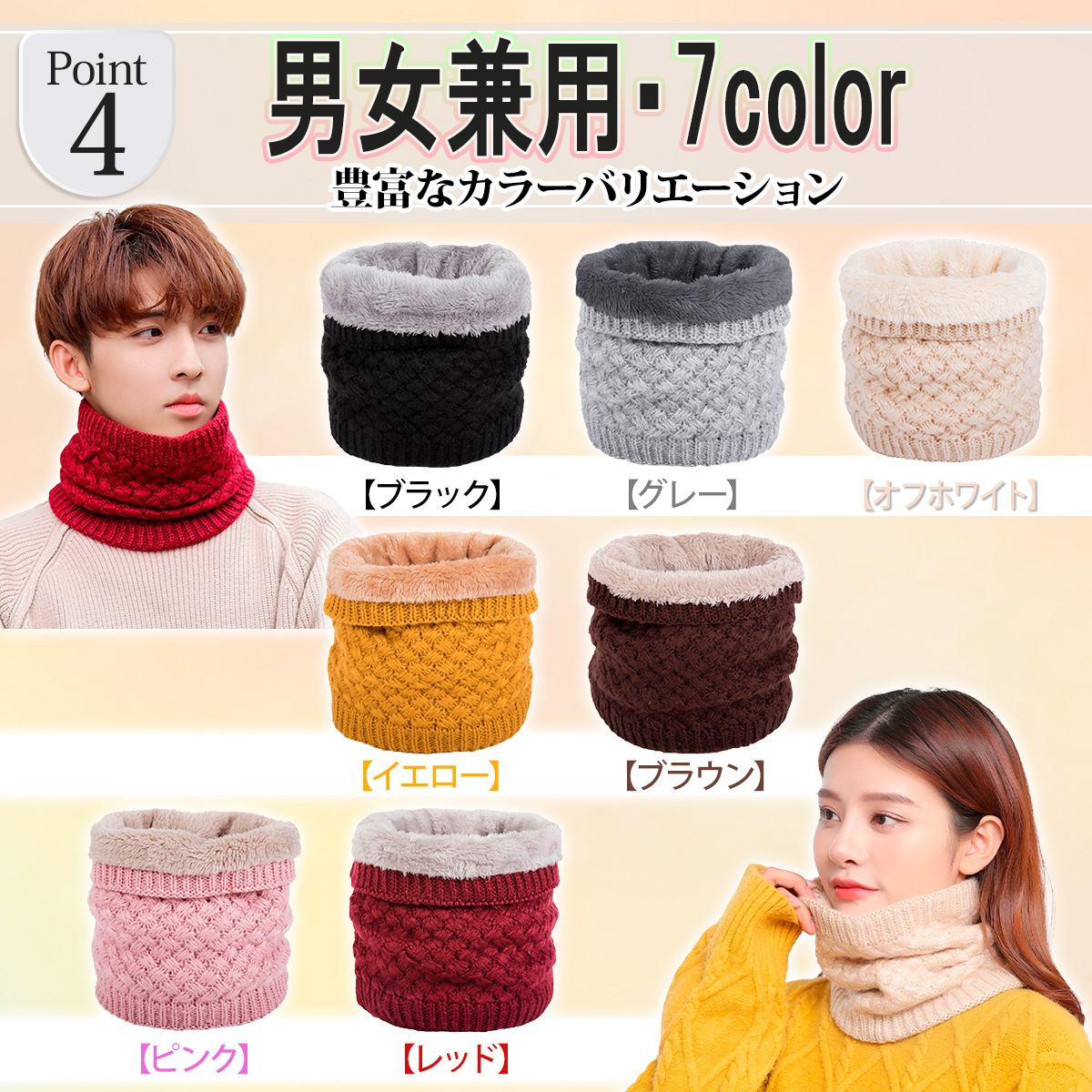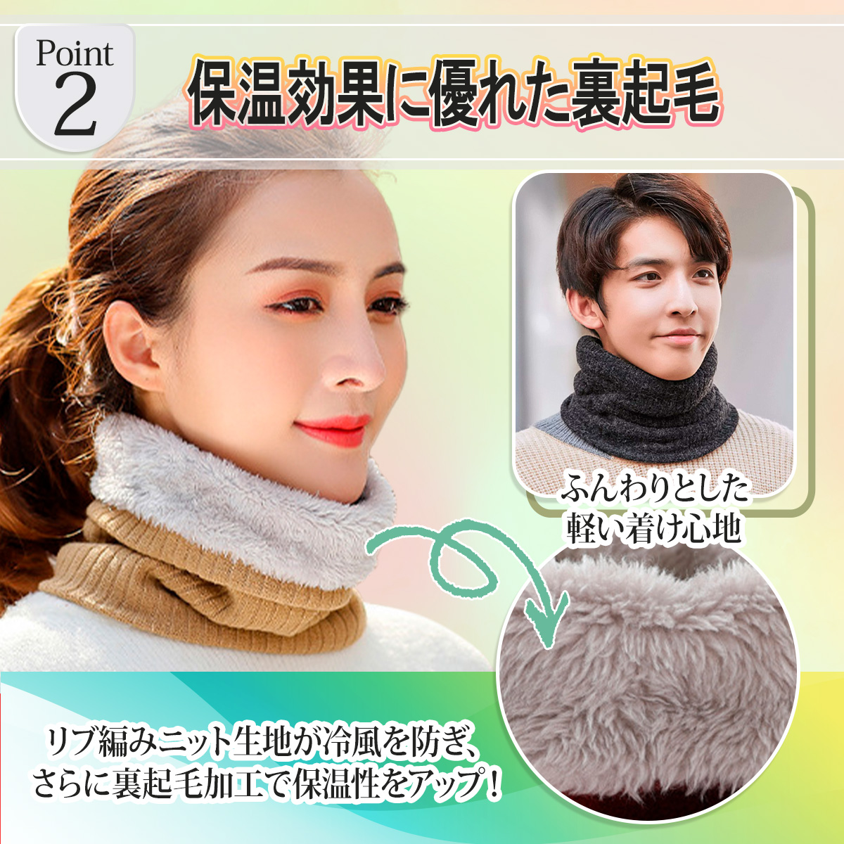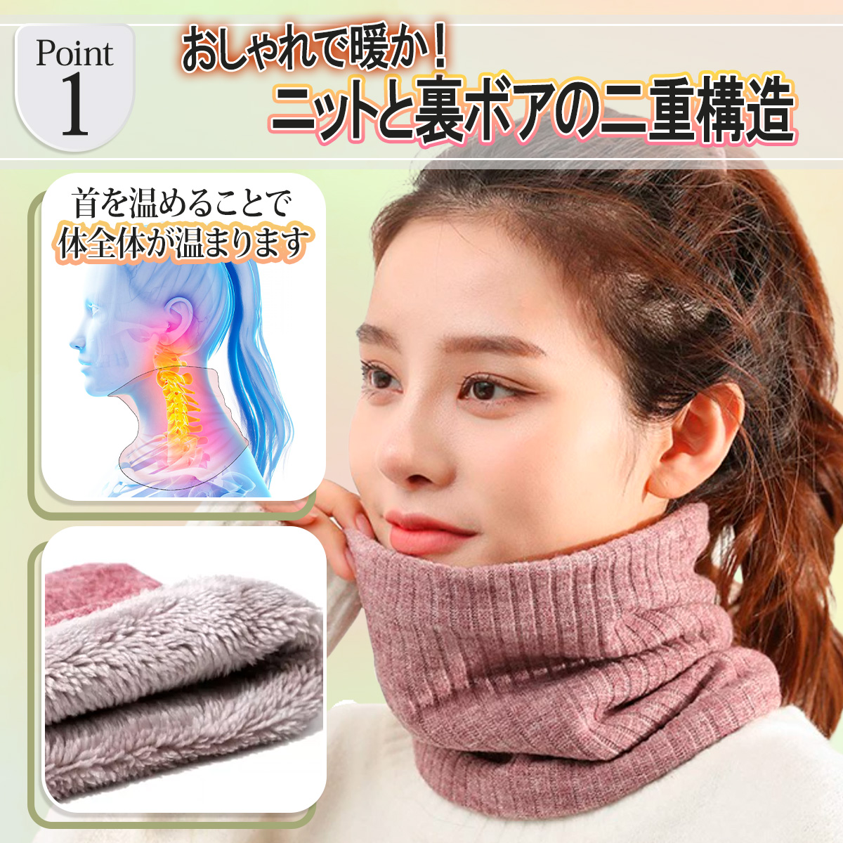 【おしゃれで暖か】表地はニット、裏地はボア素材を使用した二重構造が保温性を高め、首回りを温めることで体全体が暖まります。また首元のアクセントとして、どんなスタイルにも合わせやすいボリュームと色合いで秋冬の必須アイテムです。