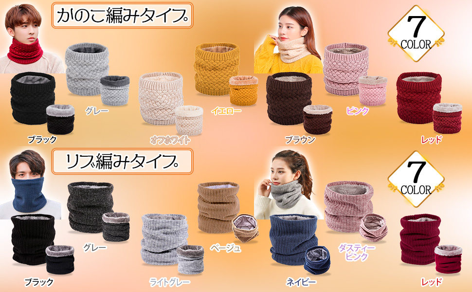 【選べる2タイプ・男女兼用】無地でも表情あふれる「かのこ編みタイプ」と、シンプルで大人っぽいコーディネイトができる「リブ編みタイプ」の2タイプからお好きなものをチョイス。通勤、通学の防寒アイテムとしてはもちろん、バイク、自転車、スキー、スノボなどの冬のウインタースポーツ用にも大活躍します。
