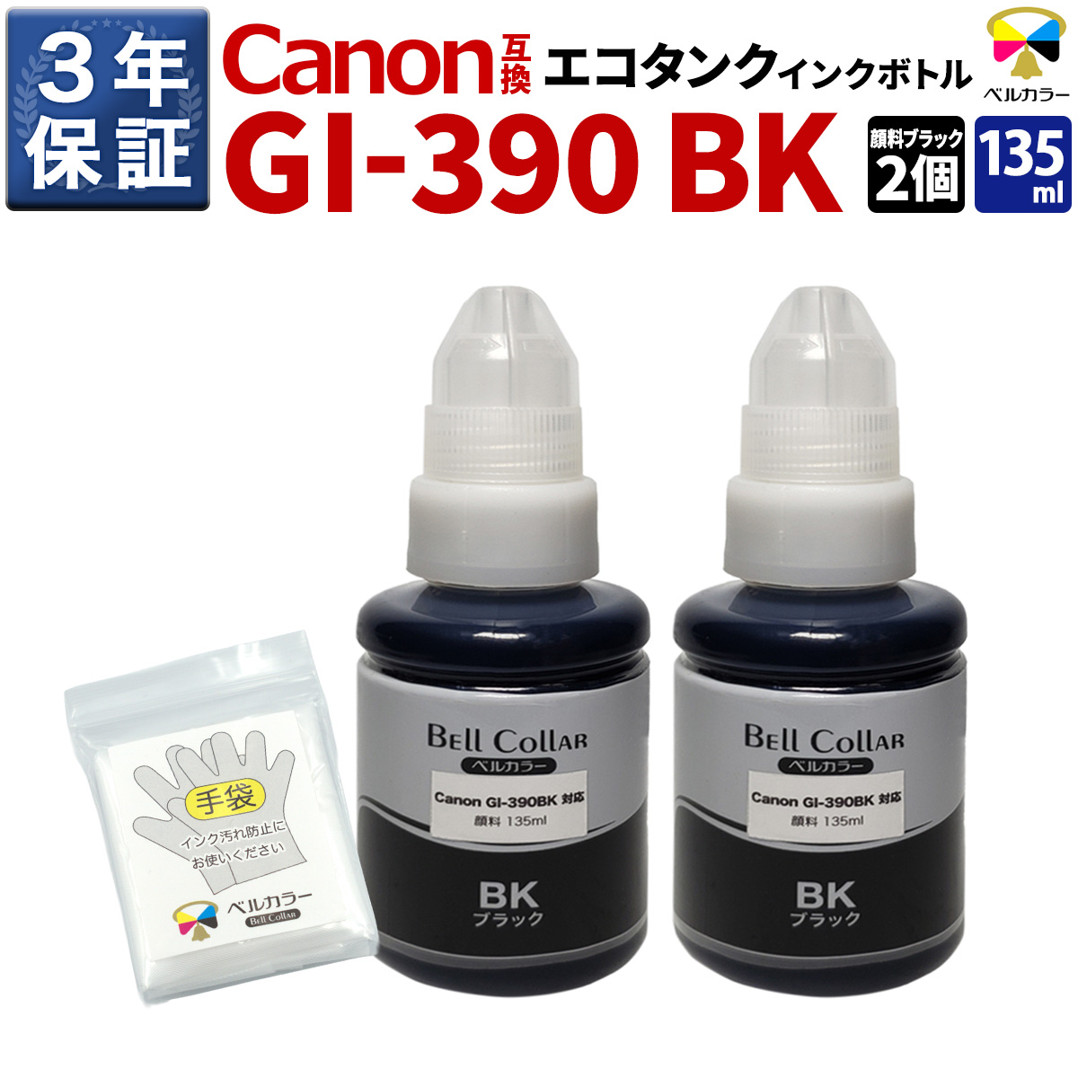 3年保証 キヤノン Canon互換 GI-390 対応 G3310 G1310 エコタンク用 互換インクボトル ブラック 2個パック ベルカラー製