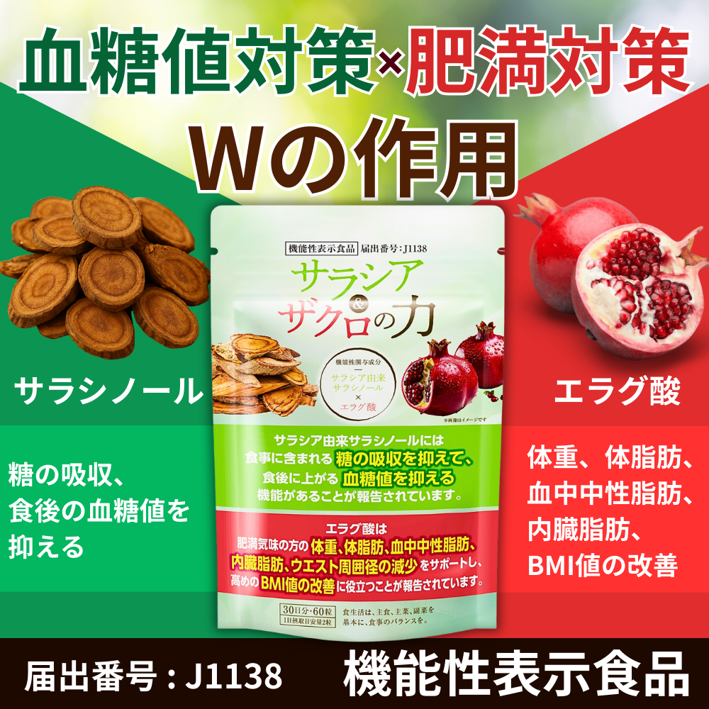 血糖値対策 肥満対策 サラシア サラシノール ザクロ エラグ酸 体重 体脂肪 血中中性脂肪 内臓脂肪 ウエスト周囲径 BMI値 ダイエット サプリメント 機能性表示食品 サプリ サプリメント さぷり 健康サプリ 健康サプリメント 健康 男性 女性 男女 メンズ レディース ユニセックス ギフト プレゼント 日本 日本製 国産 国内製造 安心 安全 30日分 1ヶ月分 マンジャロ 爆買